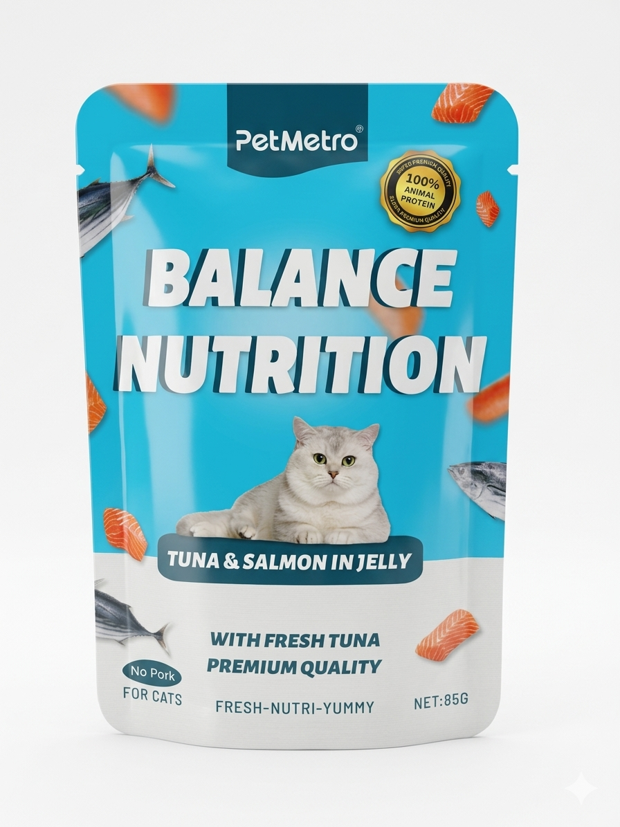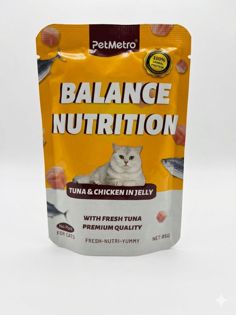 PetMetro introduces the “Balance Nutrition” series, carefully crafted to provide your cat with a complete daily meal that combines delicious taste with maximum nutritional benefits. These meals feature fresh meat chunks in a savory “Jelly” for easy eating and digestion. The formula relies on 100% high-quality animal protein and is completely pork-free, ensuring pure, healthy nutrition that supports your cat’s energy and vitality.