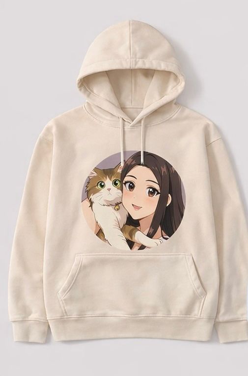 Wear your love, literally! Print your own custom photo with your pet on our Soulmate Hoodie. Crafted from premium cotton, this piece transforms your favorite bond into a unique cartoon masterpiece. It’s more than just a hoodie—it’s a piece custom-made just for you, a warm embrace, and a memory that walks with you wherever you go.”
