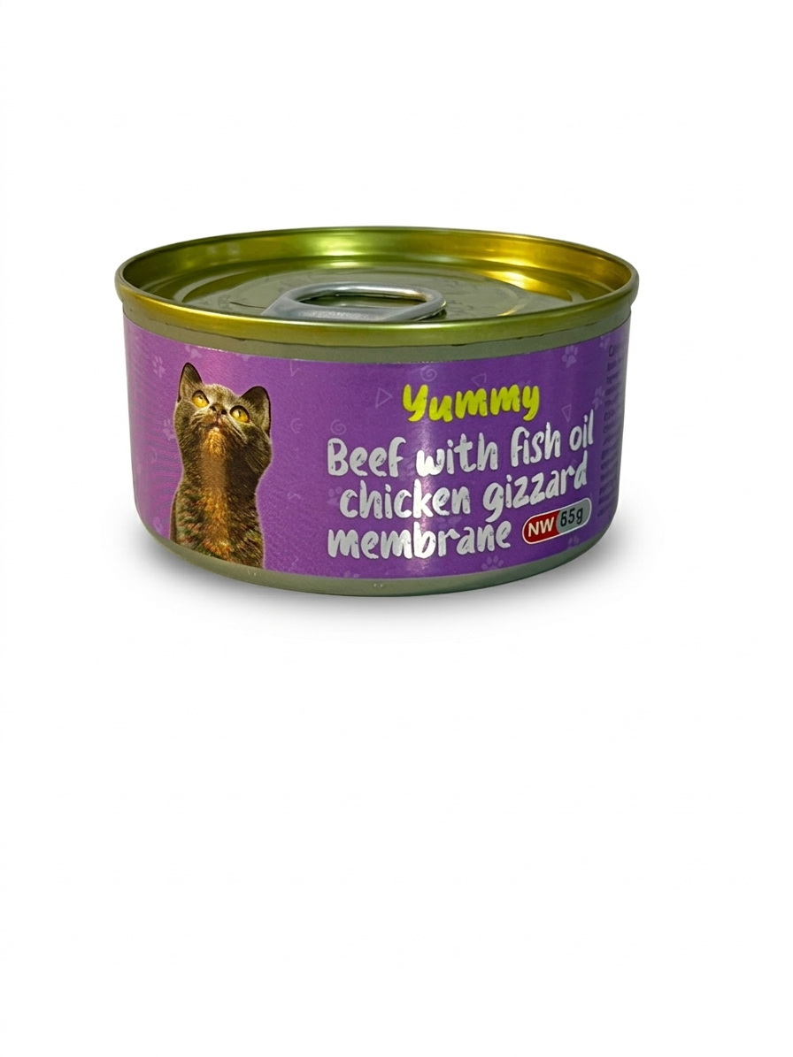 “Yummy offers a collection of premium wet cat food, carefully crafted to meet your cat’s nutritional needs in a single 85g fresh serving. This range features unique formulas combining pure animal protein with healthy boosters like fish oil and chicken gizzard membrane for joint and coat support. Choose your cat’s favorite flavor from the list below and guarantee a meal packed with taste and health benefits.”